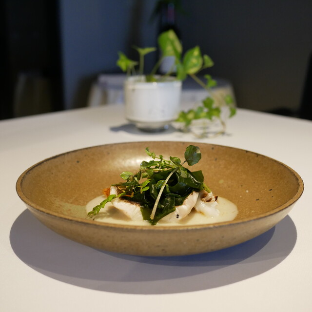 徳山産天然真鯛と甲イカ、若芽のナージュ